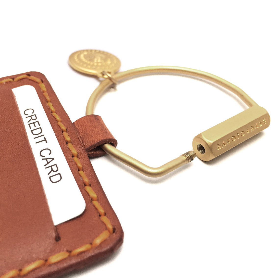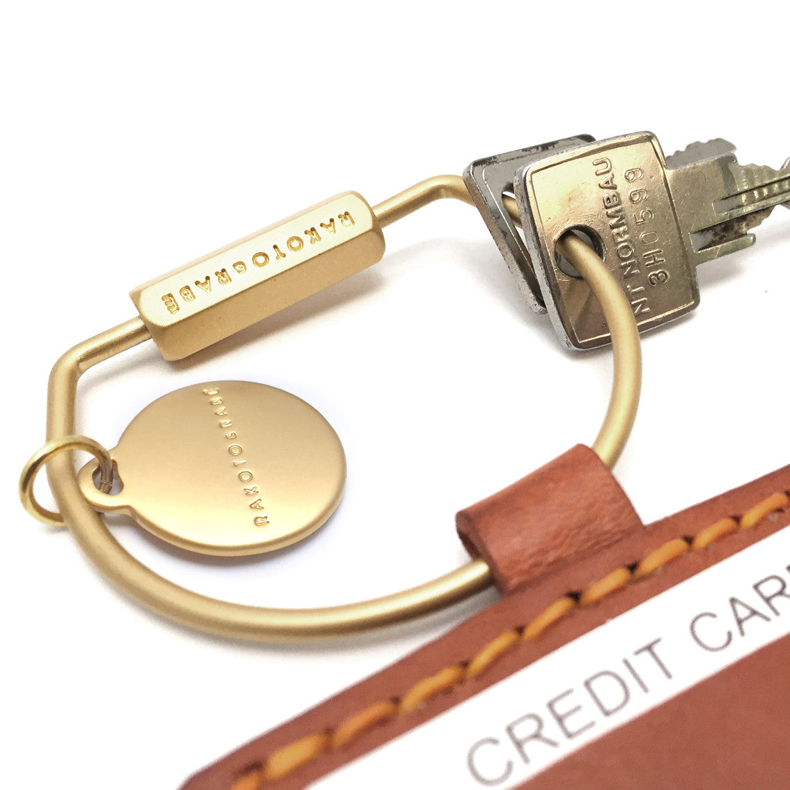 Variants : Matt-Gold D-keyring with 2 sides credit card slots.
